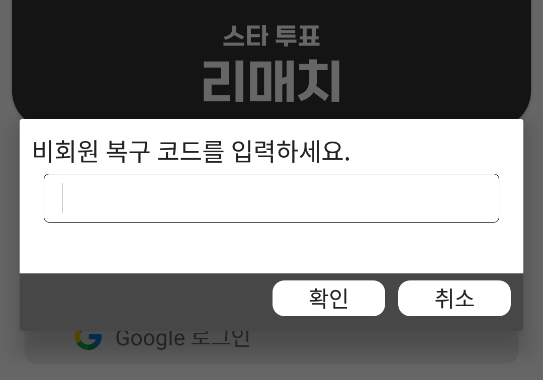 6. 저장해 두었던 복구 ID를 입력하고 확인 버튼을 누르면 비회원 복구가 완료됩니다!
