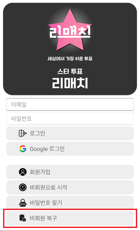 리매치 비회원 계정 복구 방법을 잘 모르시는 분이 많아 복구 방법을 전달해 드립니다.
