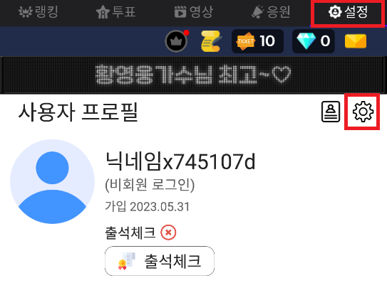 2. 설정 화면에서 톱니바퀴 아이콘을 클릭