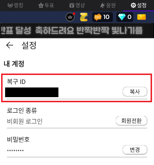우선 비회원 계정을 복구하기 위해서는 고유의 복구 ID를 알고 있어야 합니다.