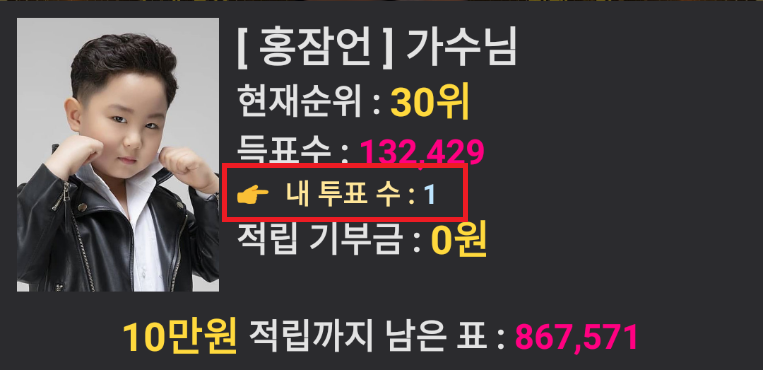 랭킹에서 가수님을 선택하면 상세 정보창에 내 투표 수가 같이 표시 됩니다.