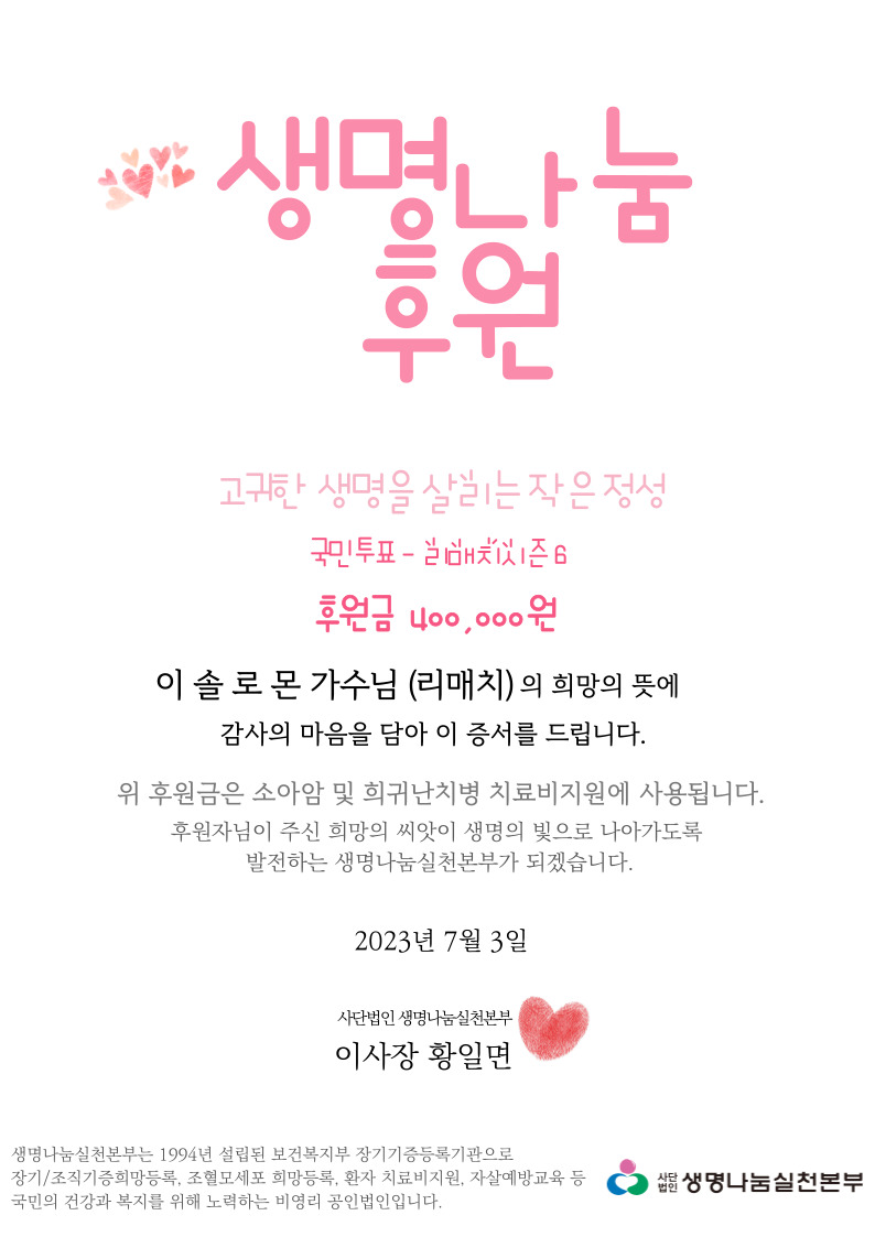 국민투표 리매치 🏅시즌6🏅 후원증서
