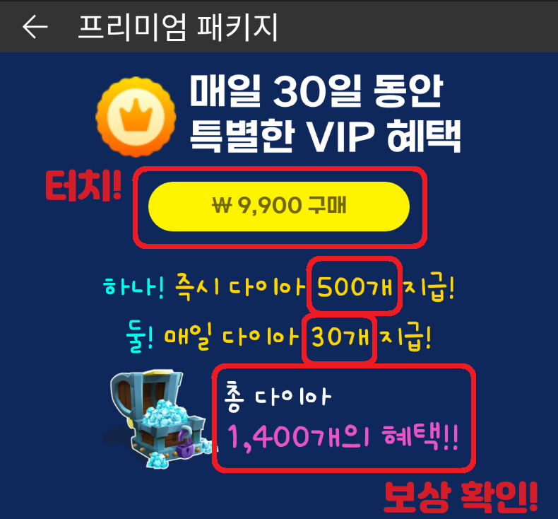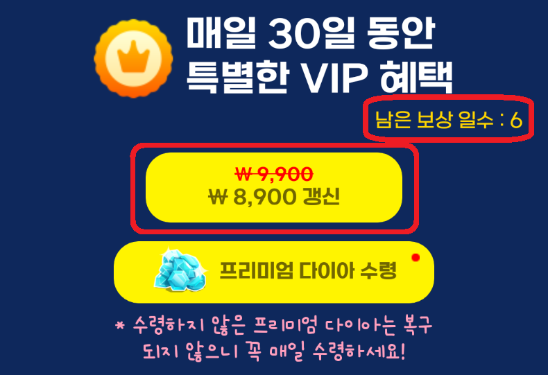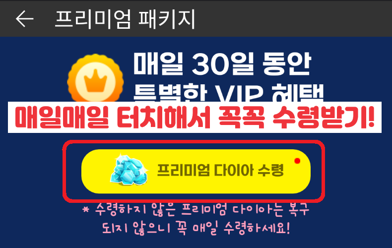 5. 프리미엄 다이아 매일매일 꼭 수령 받기!