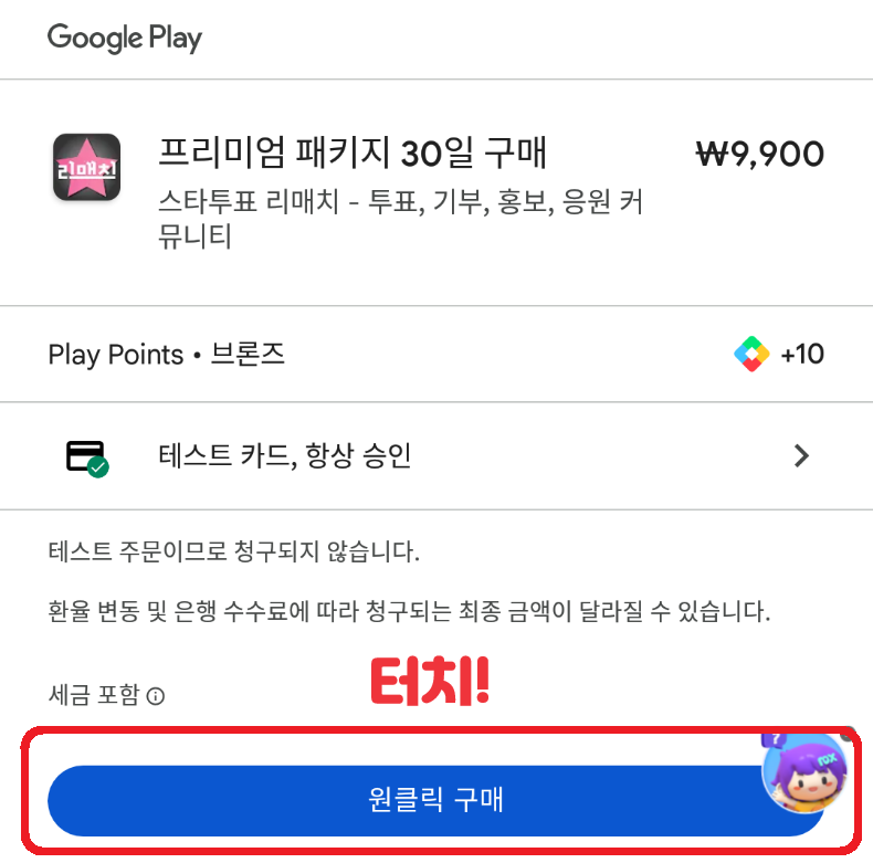 2. '9,900 구매' 또는 '8,900 구매' (갱신) 터치!