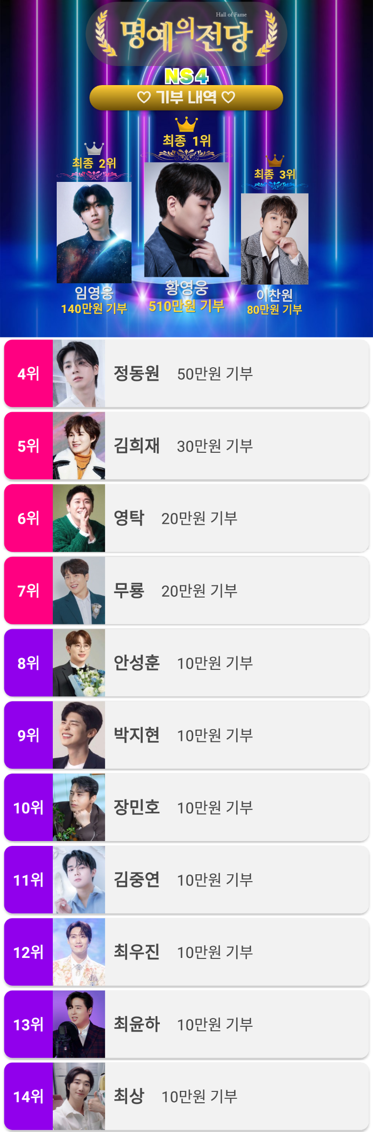 최애 가수님을 향한 팬분들의 엄청난 사랑과 뜨거운 응원으로 많은 기부금이 적립되었습니다! 가수님들과 꼭 닮은 팬분들의 선한 마음씨가 세상을 참 아름답게 만들어주고 계십니다!