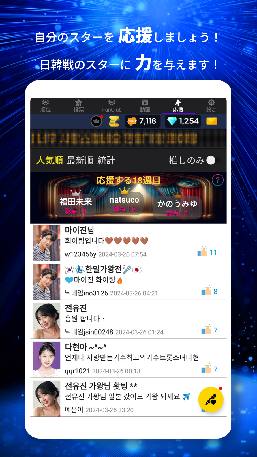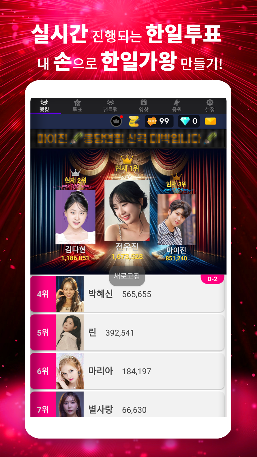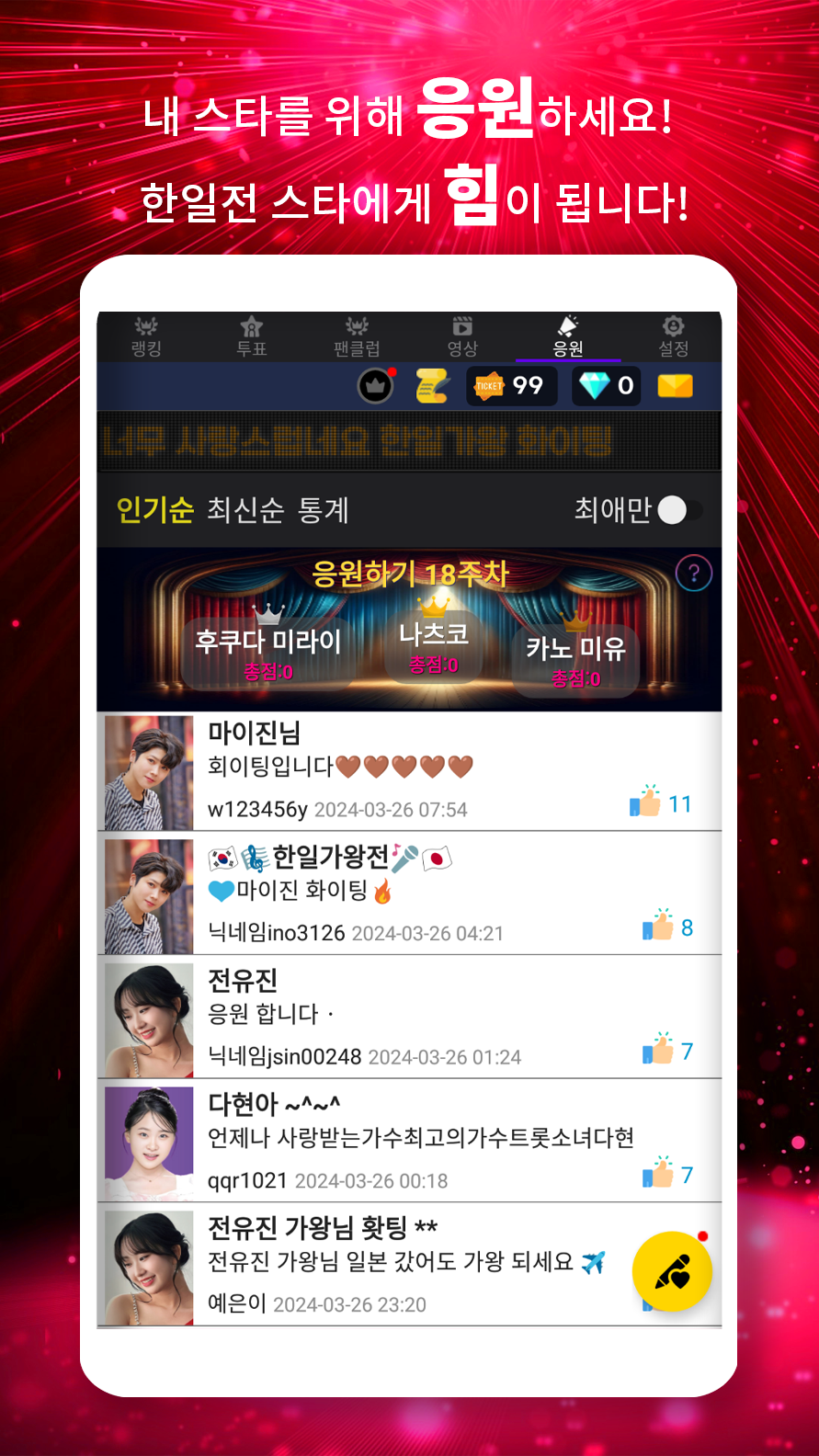 - 신규버전을 다운받으셔야 ❤️한일가왕전💙 투표에 참여 가능합니다!