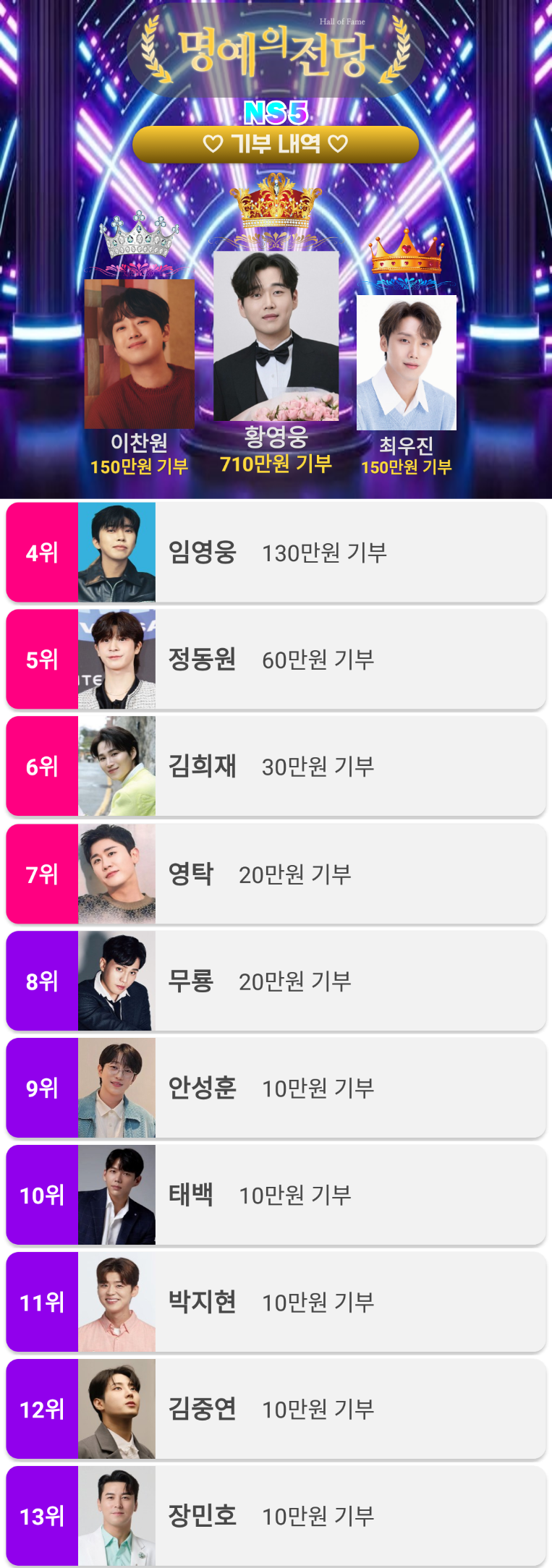 최애 가수님을 향한 팬분들의 엄청난 사랑과 뜨거운 응원으로 많은 기부금이 적립되었습니다! 가수님들과 꼭 닮은 팬분들의 선한 마음씨가 세상을 참 아름답게 만들어주고 계십니다!