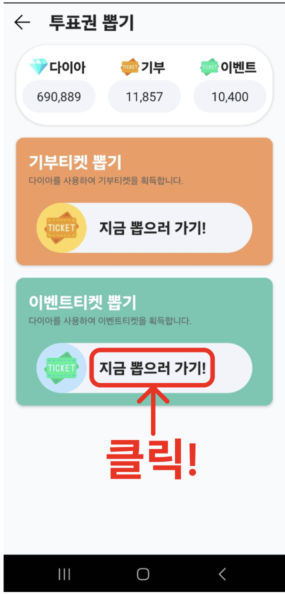 원하시는 뽑기를 선택 하고 투표권을 뽑아보세요. 😆