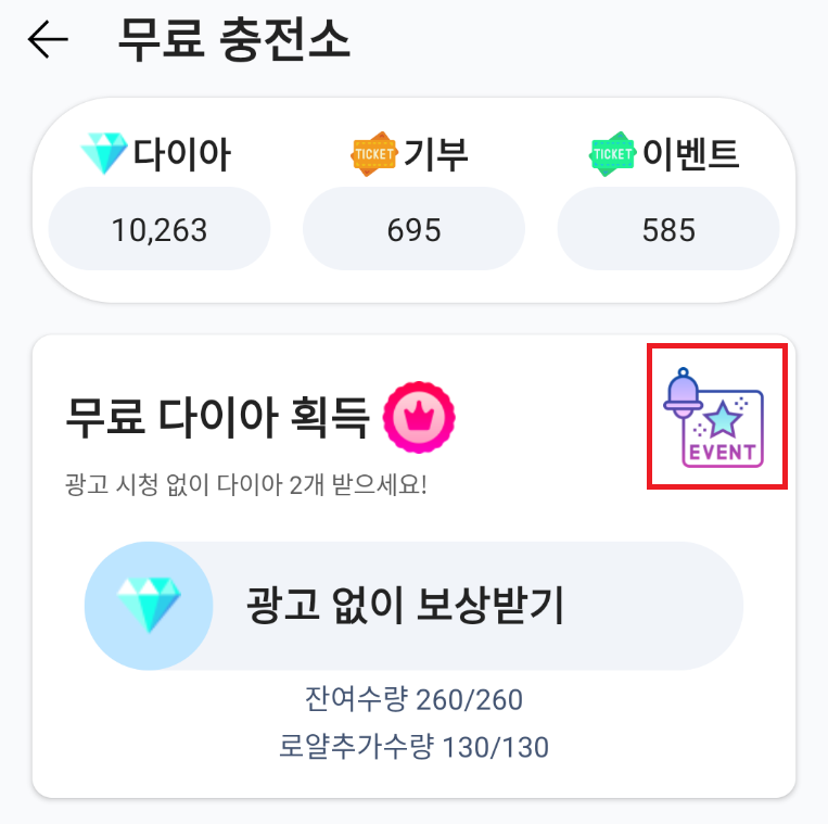 현재 진행중인 이벤트를 무료 충전소에서도 확인 가능합니다.