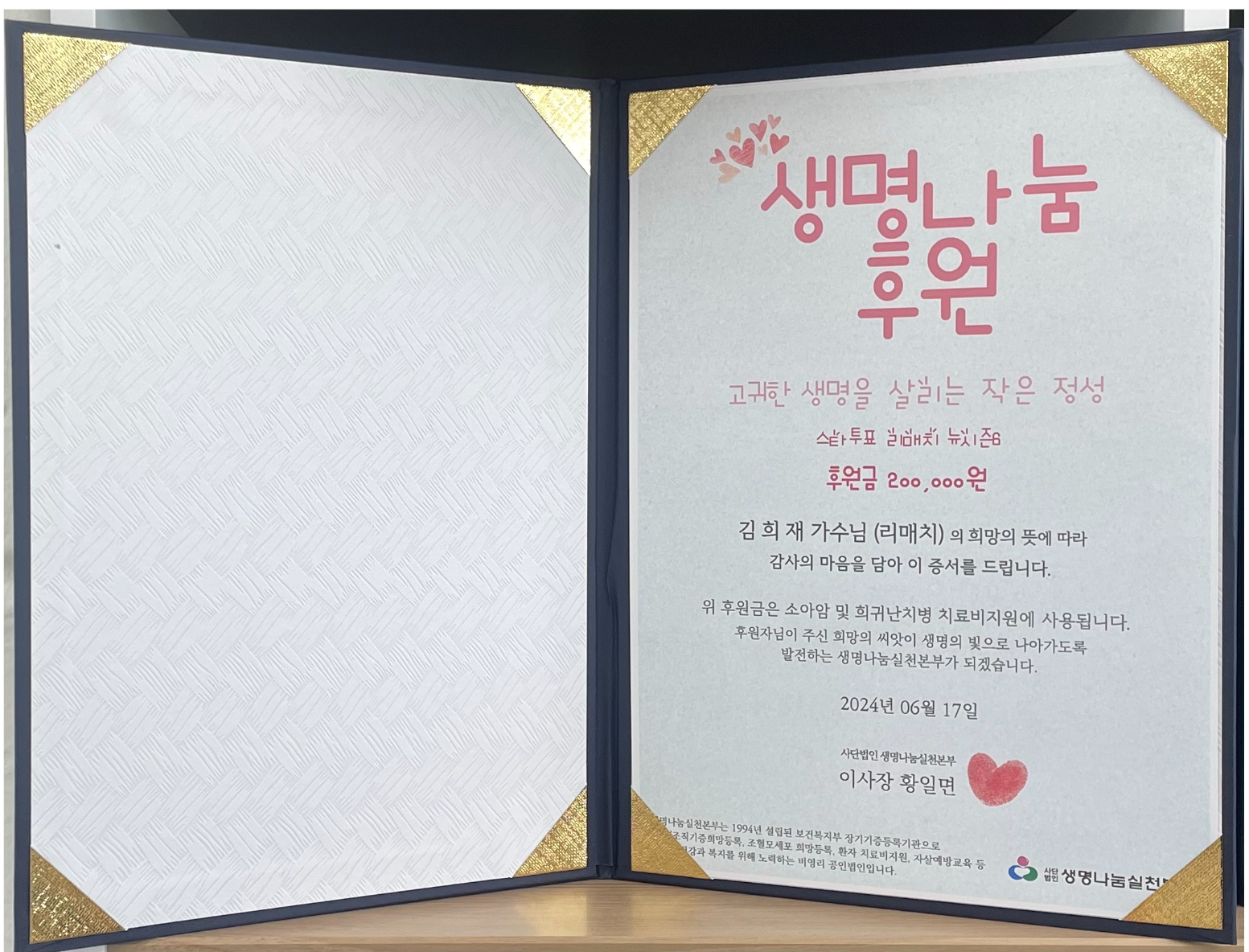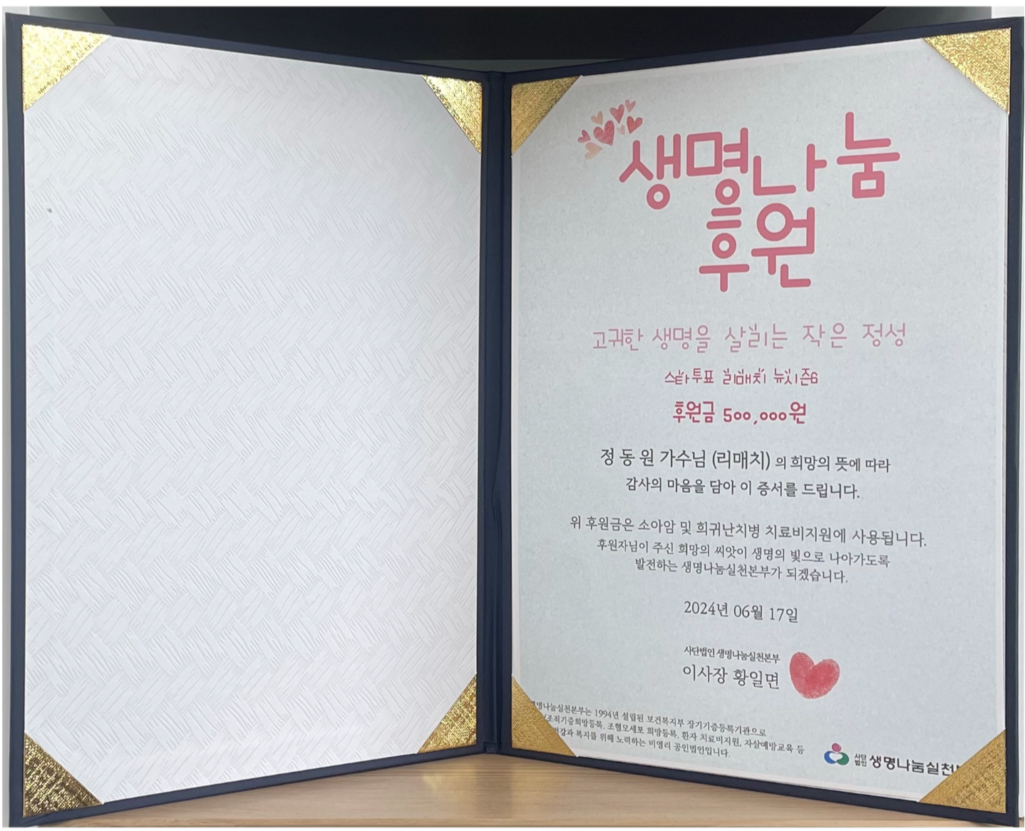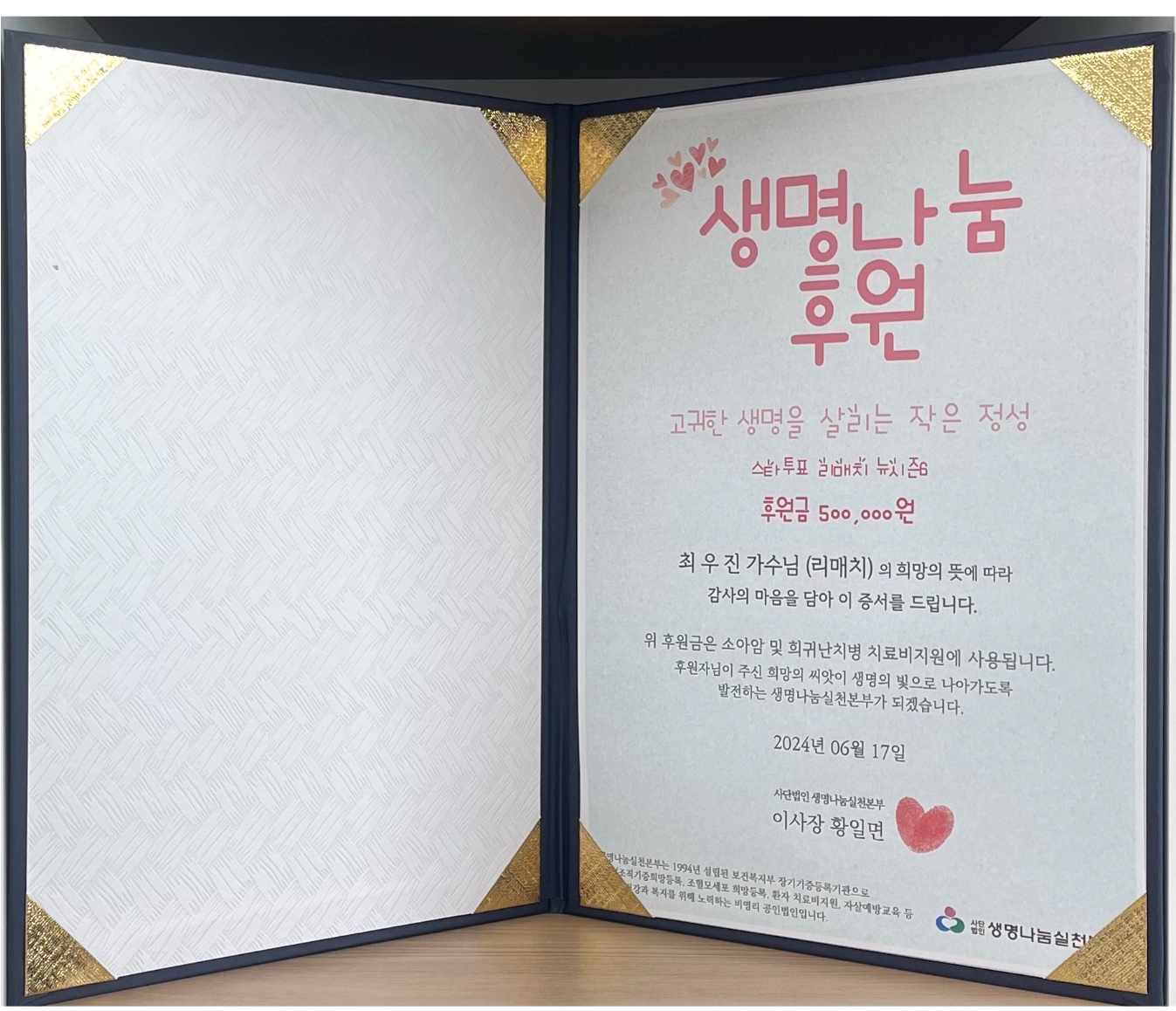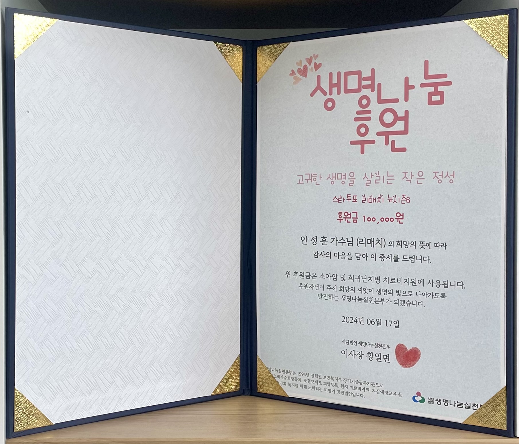 리매치 🏅뉴시즌6🏅 실물 후원증서 공개