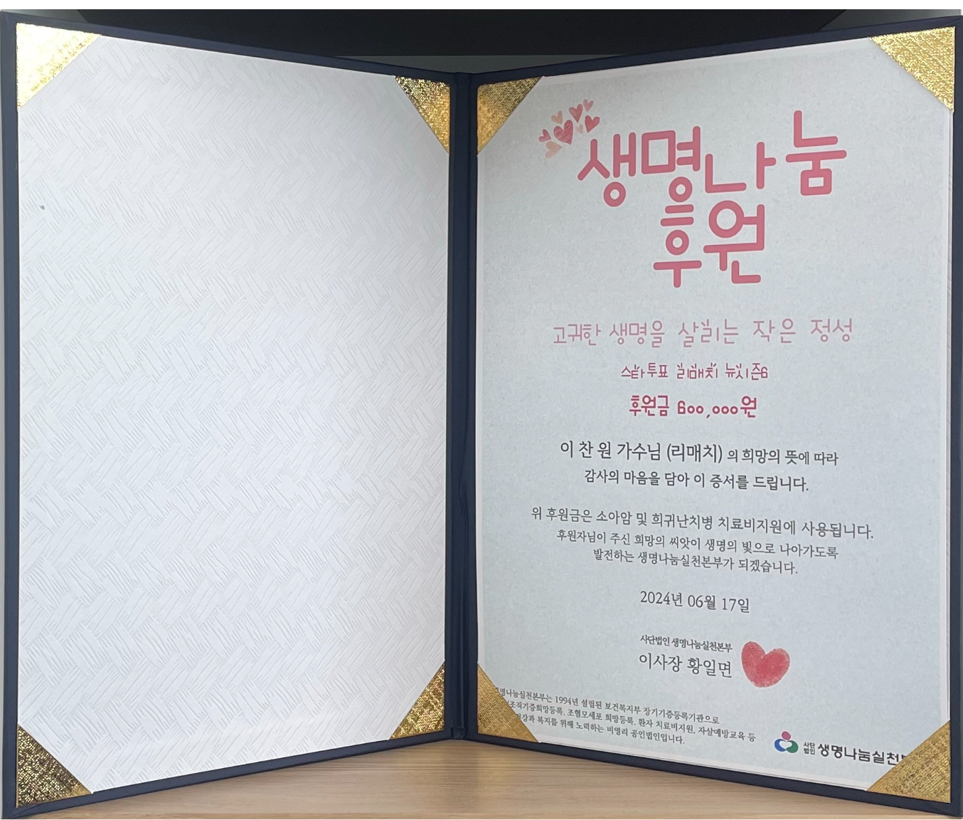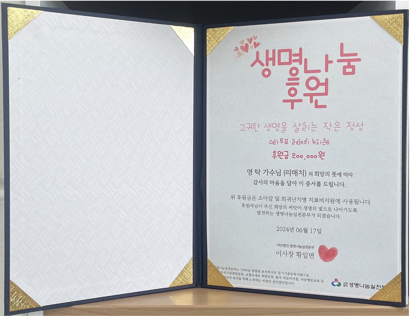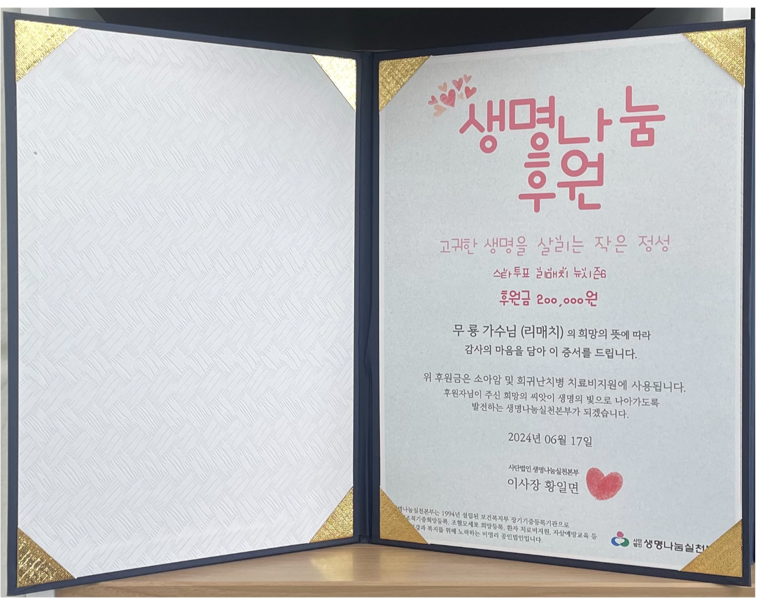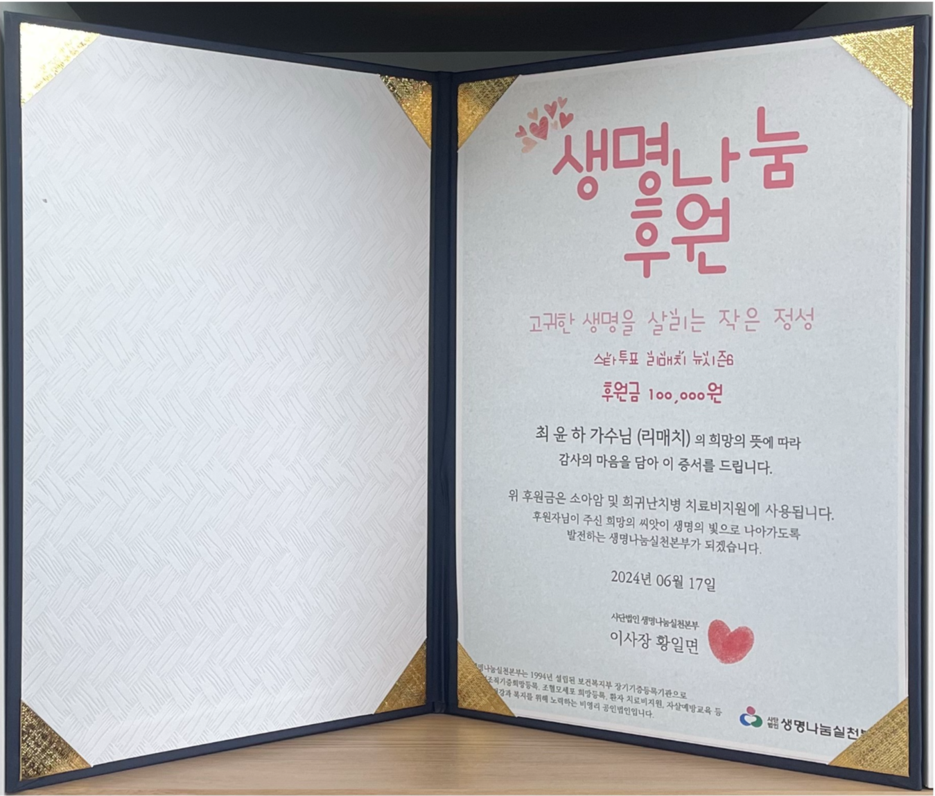 리매치 🏅뉴시즌6🏅 실물 후원증서 공개