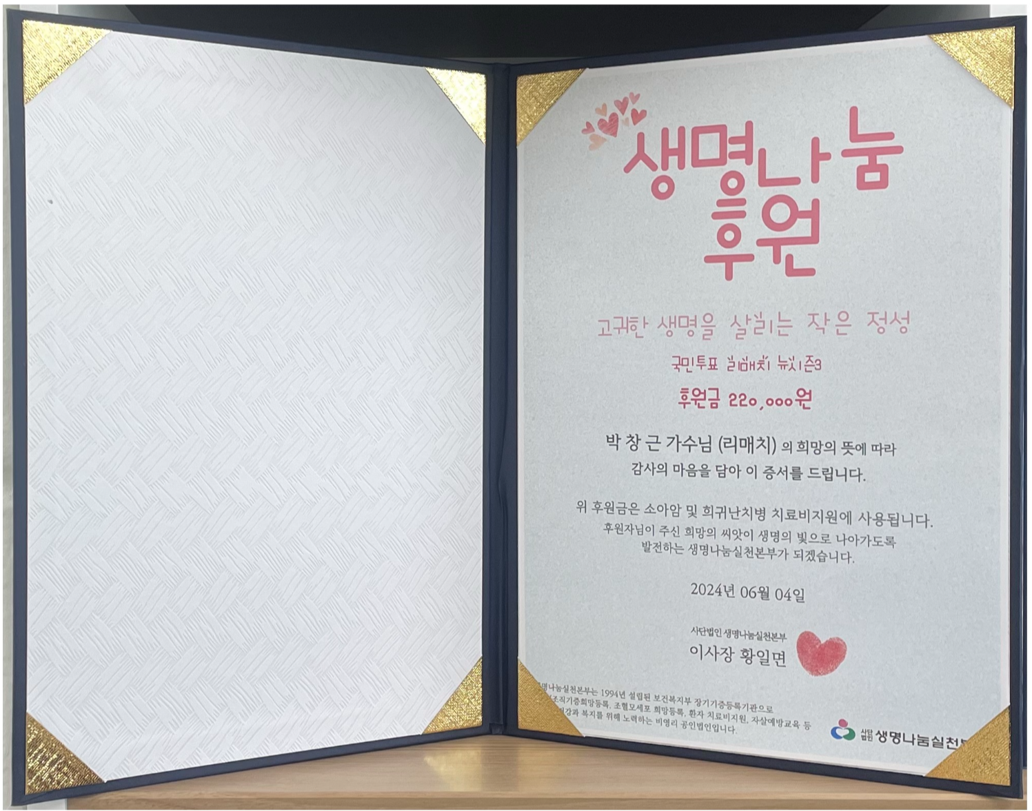 국민투표 리매치 🏅뉴시즌3🏅 실물 후원증서 공개