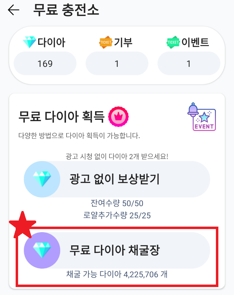 - 무료 충전소에 신규 다이아 채굴 수단이 추가되었습니다!