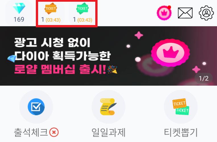 - 유튜브 시청, 앱 다운로드 등 간단한 수단으로 다양하게 다이아를 획득 가능합니다.