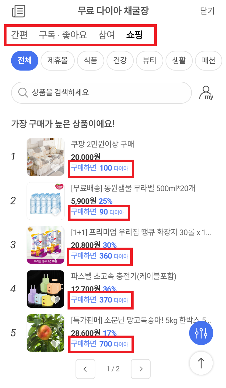 - 유튜브 시청, 앱 다운로드 등 간단한 수단으로 다양하게 다이아를 획득 가능합니다.