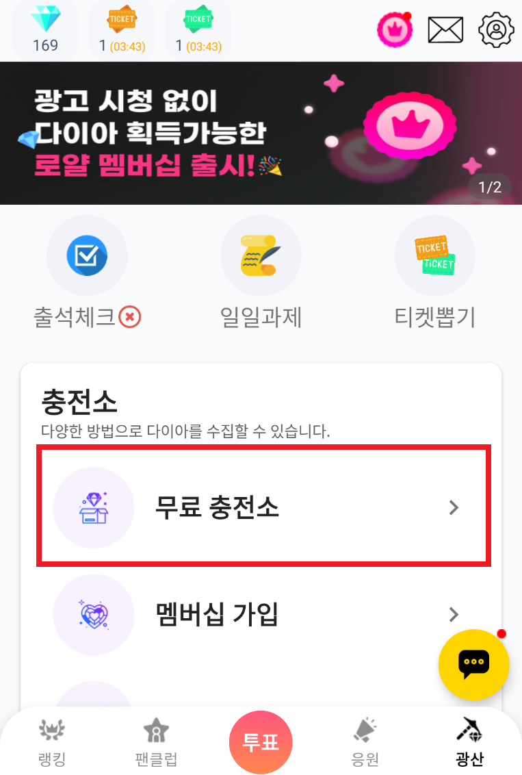무료 다이아 채굴장에서 다이아를 획득해 보세요~!