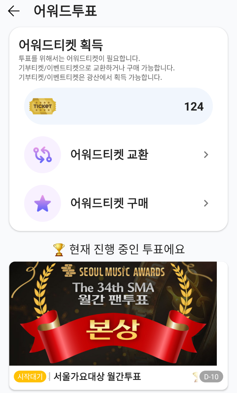 뉴시즌8 업데이트와 제34회 서울가요대상 어워드투표 추가를 기념하며 다이아 상점을 개편하였습니다!