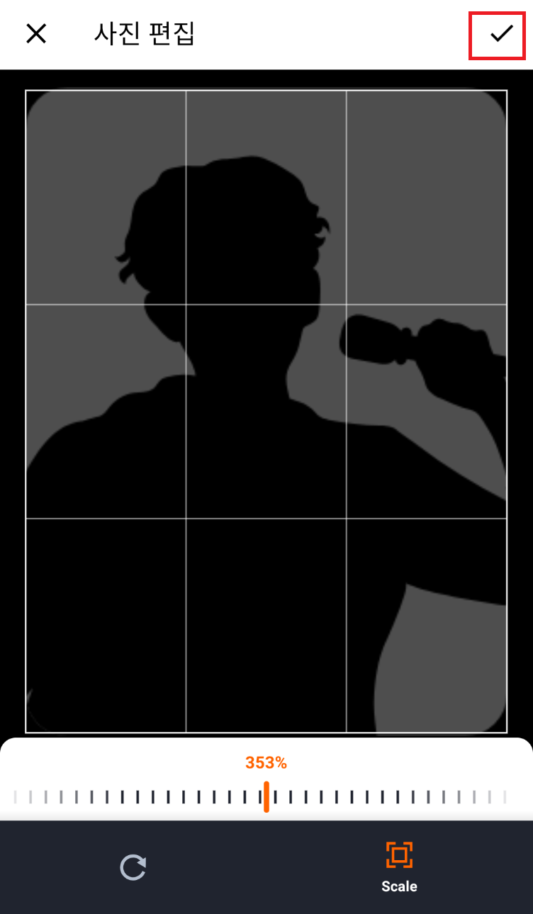 사진 첨부하기를 눌러 등록할 사진을 선택하시고 잘 보이게 편집하신 뒤 체크 버튼을 눌러 주시고 등록 버튼을 눌러주시면 등록 완료!