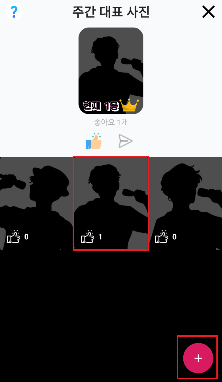 주간 대표 사진을 등록하시려면 아래에 + 버튼을 눌러서 등록하시면 됩니다.