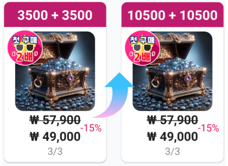 회원님들에게 더욱 많은 다이아를 제공하기 위해 패키지 가격은 그대로! 제공 다이아는 더욱 많이! 드립니다.