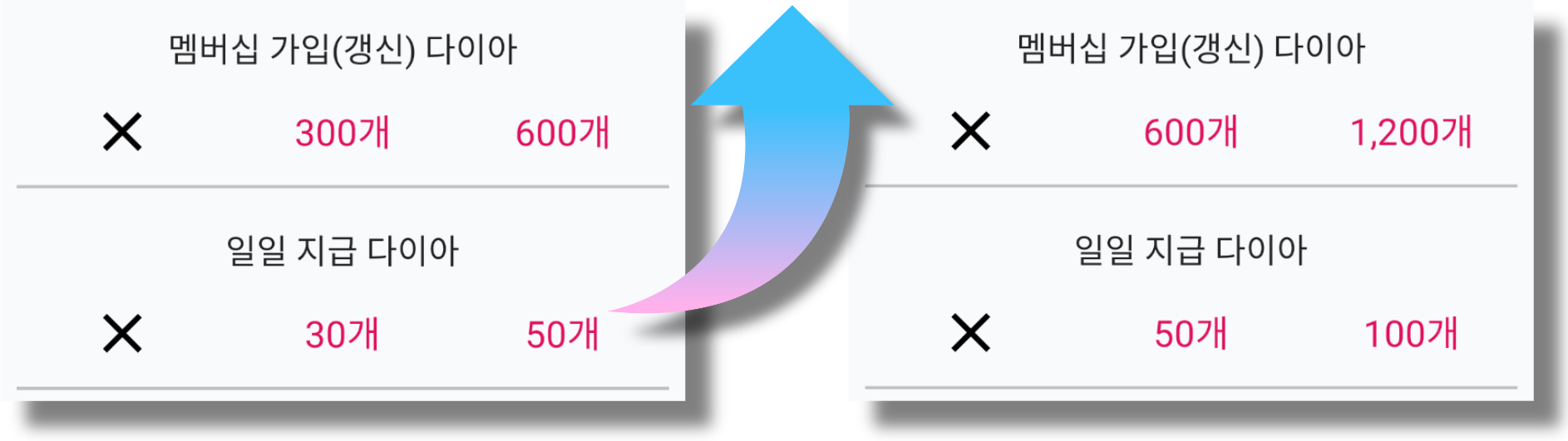 이미 멤버십 이용중이신 분들도 걱정마세요. 구매 시 제공되는 다이아를 차등 지급해 드릴 예정입니다.