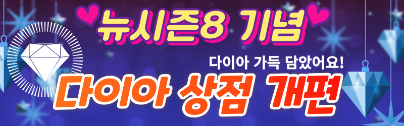 뉴시즌8 업데이트와 제34회 서울가요대상 어워드투표 추가를 기념하며 다이아 상점을 개편하였습니다!