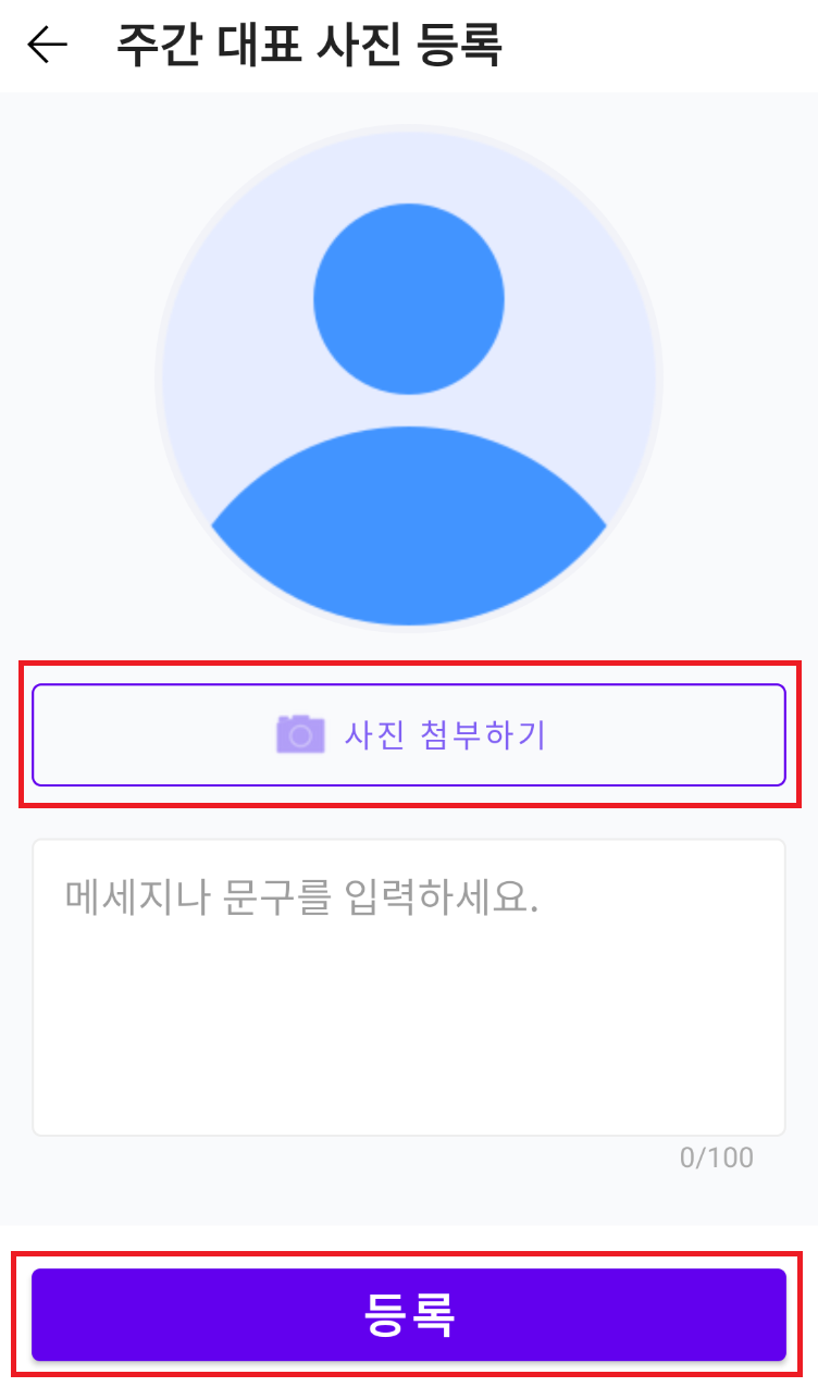 주간 대표 사진을 등록하시려면 아래에 + 버튼을 눌러서 등록하시면 됩니다.