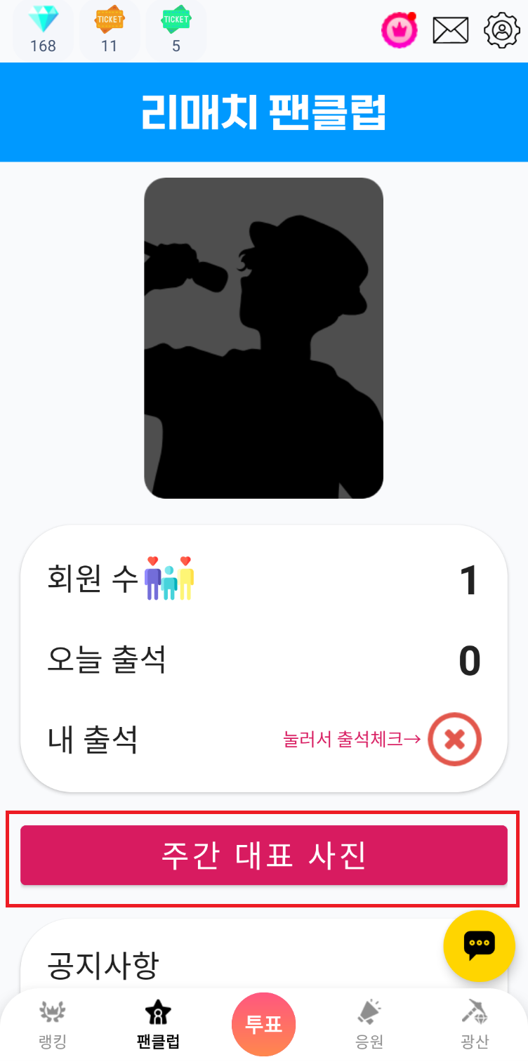 당장 팬클럽으로 이동하셔서 주간 대표 사진을 눌러 보세요.
