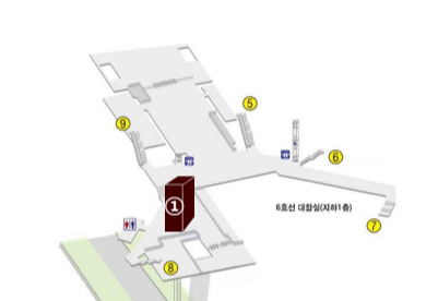 CM보드 기둥은 6호선 구간의 지하1층 개찰구 바깥쪽 설치.
