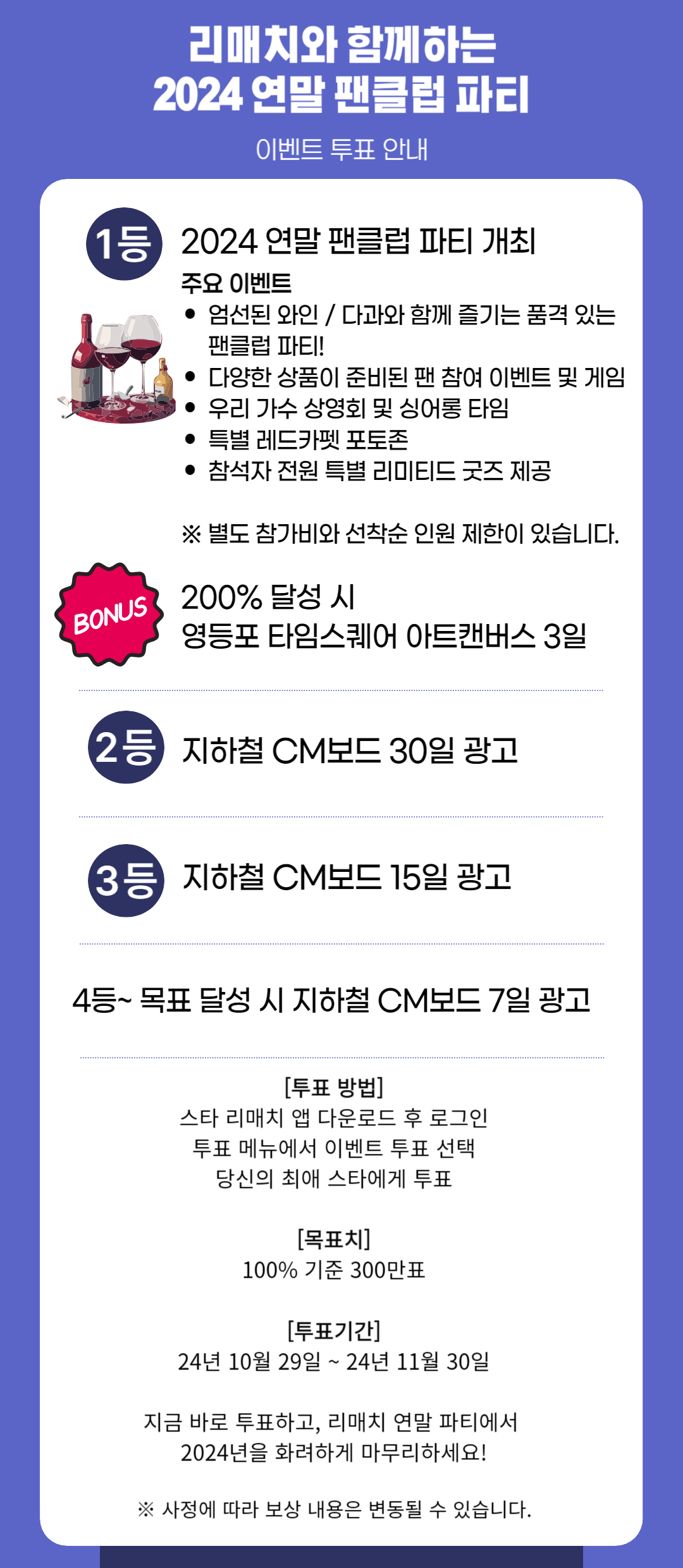 ▶ 1등 : 🌟2024 연말 팬클럽 파티 개최🎉