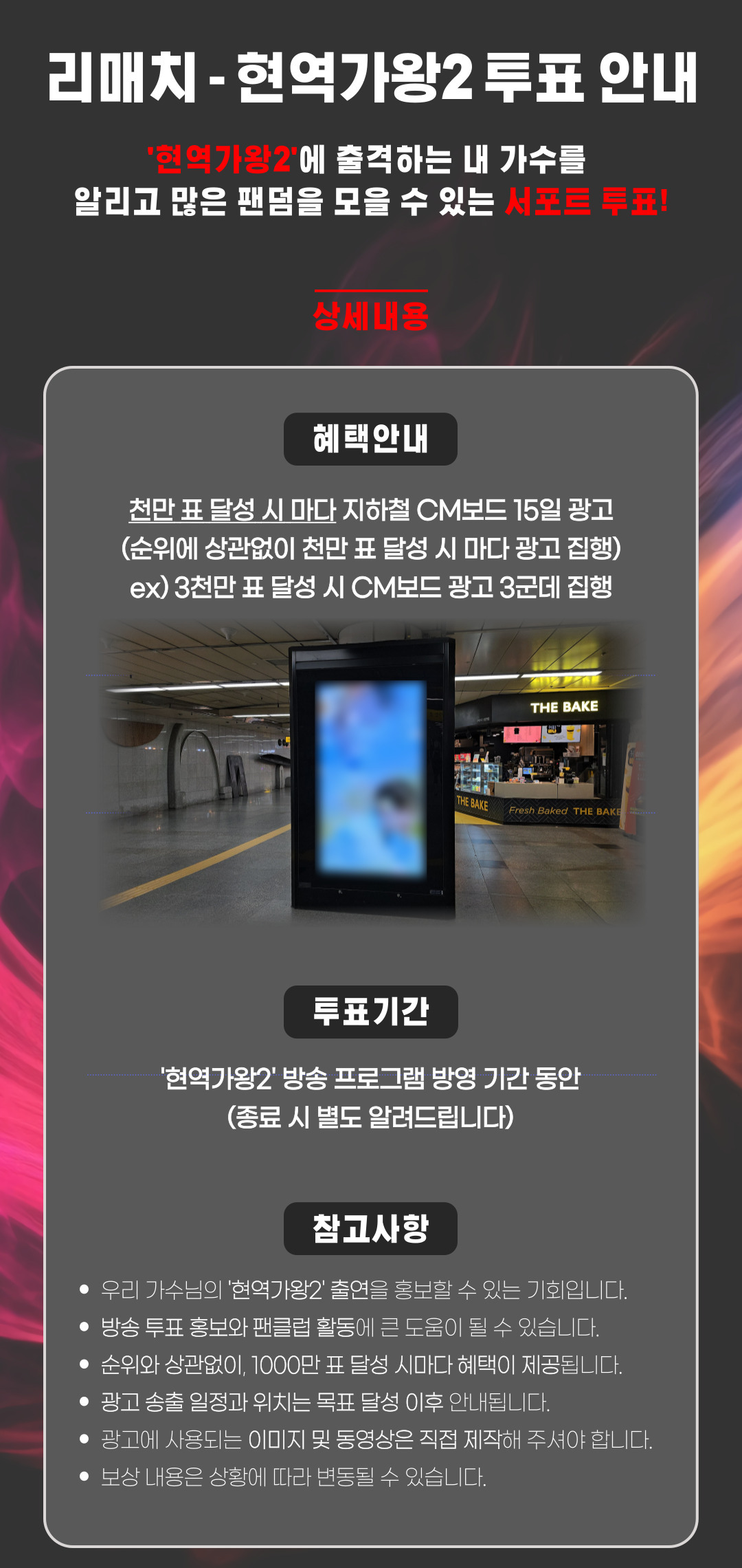 현역가왕 인기 투표 보상 - 방송이 끝날 때까지 나의 가수를 홍보할 수 있는 기회!!