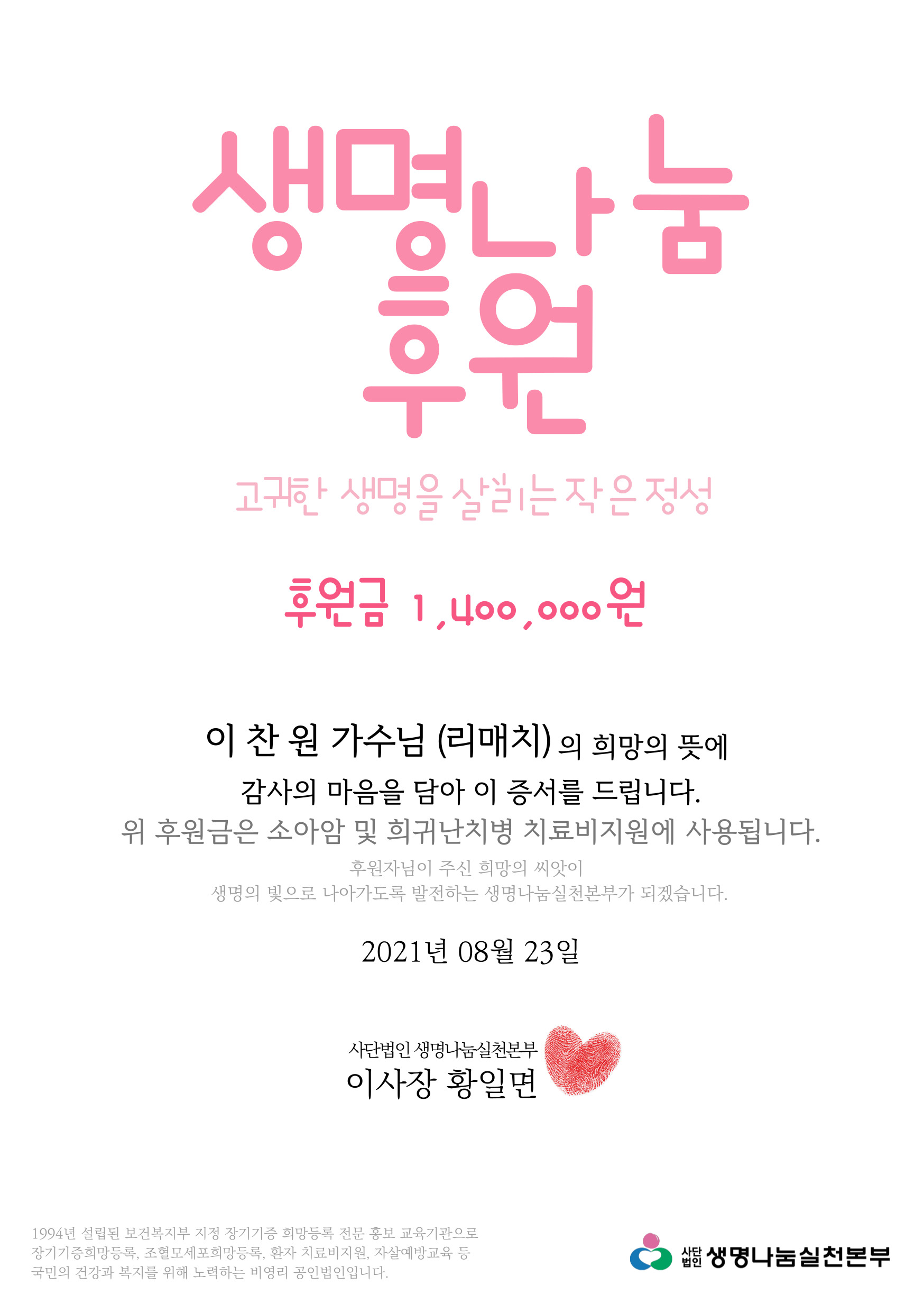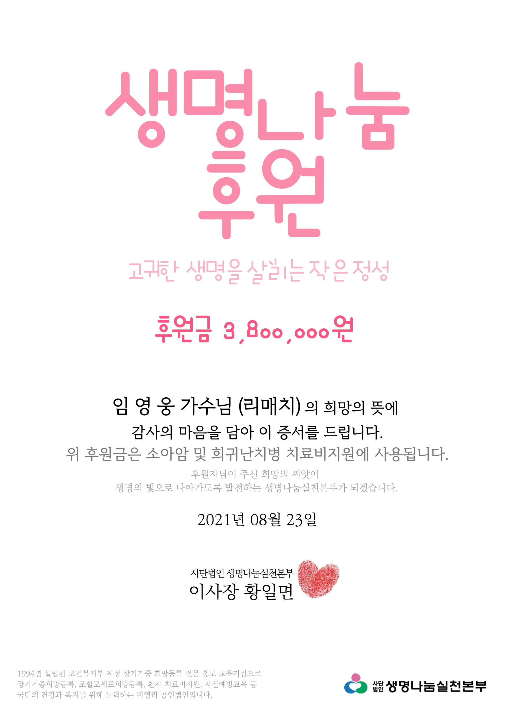 리매치 소식지 ❤기부기사❤ (feat. 생명나눔실천본부)
