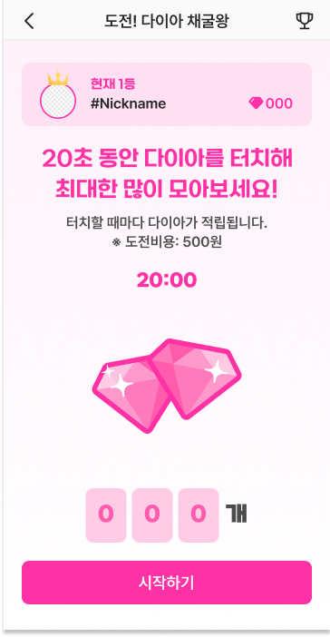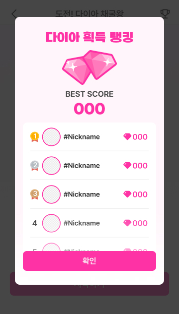 😲 추가로 :) 다이아를 채굴 하신 수 대로 랭킹에 닉네임이 표시될 예정이에요!