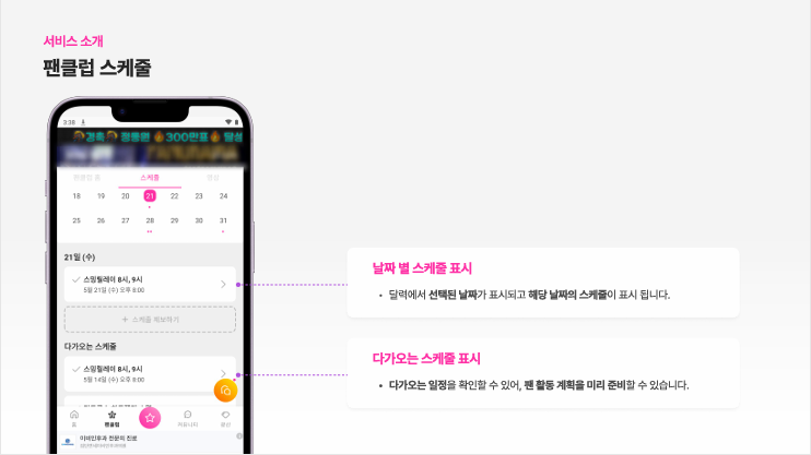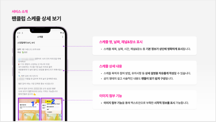 - 스케줄 작성시 총공 관련 이미지 와 내용을 입력 (스케줄 확정 승인은 팬클럽 리더 한정 가능)