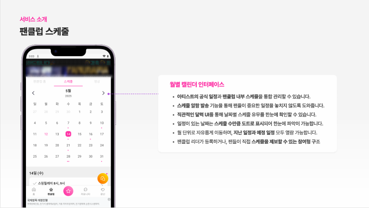 - 가수 관련 스케줄 및 총공 스케줄을 입력 기능 (스케줄 확정 승인은 팬클럽 리더 한정 가능)