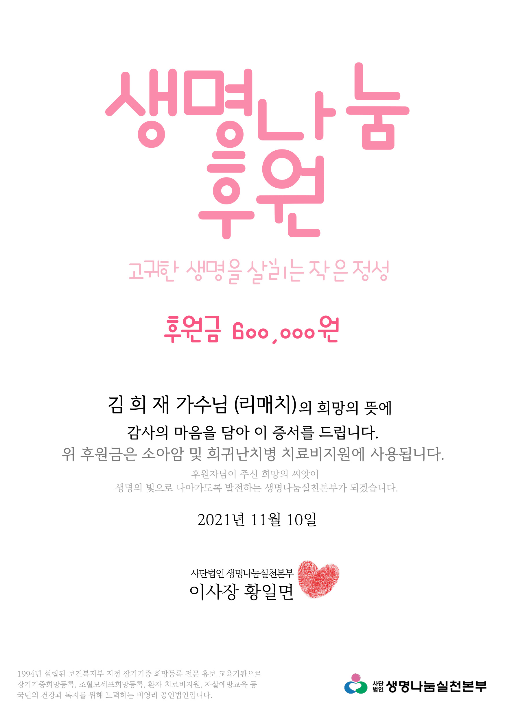 리매치 소식지 ❤기부기사❤ (feat. 생명나눔실천본부)