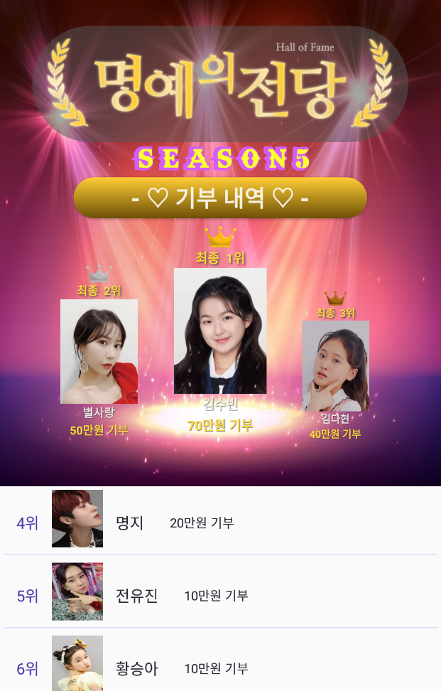 이번 시즌5 에서 적립된 총 후원금은 무려
