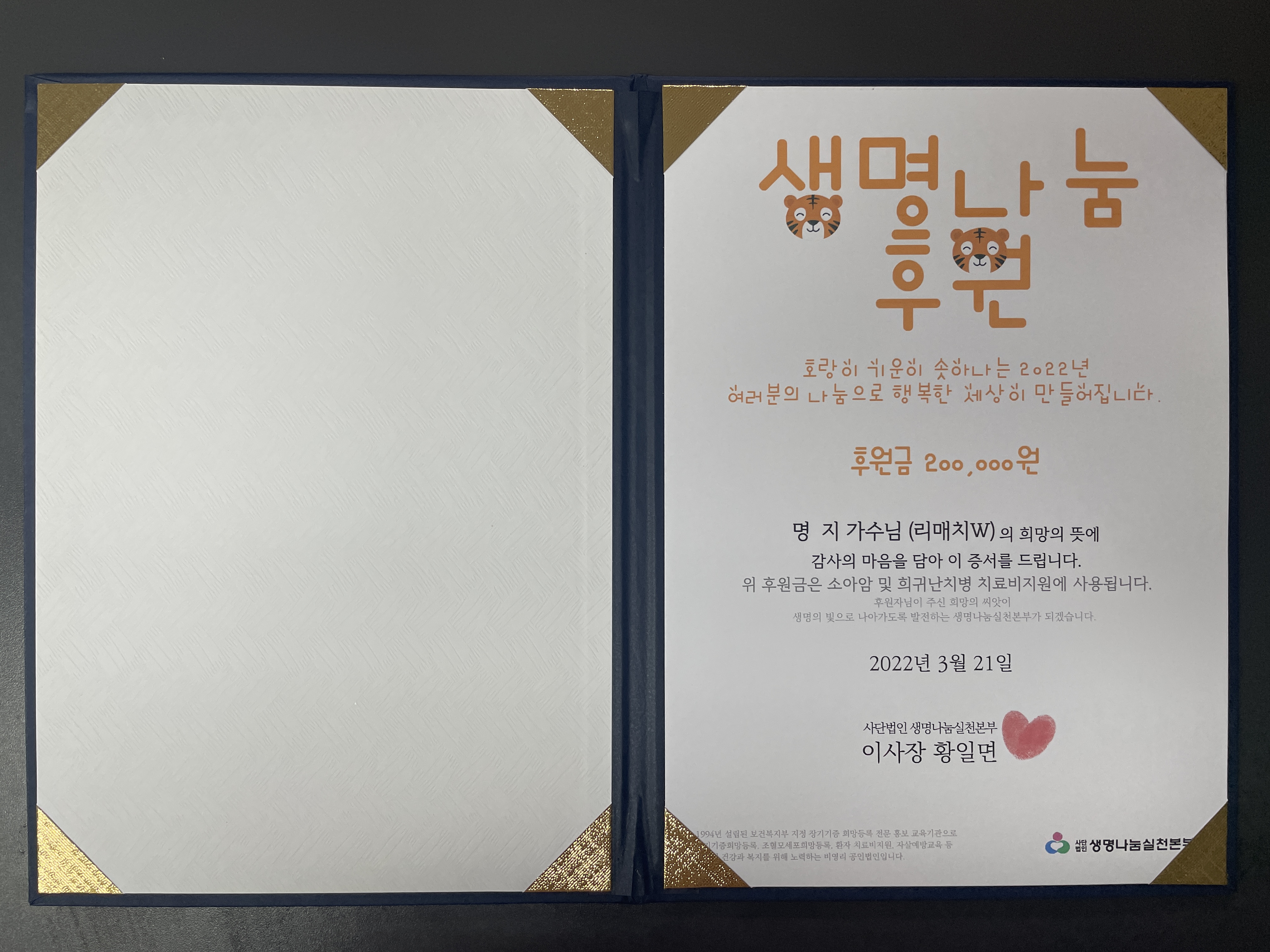 리매치W 🏅시즌4🏅 실물 후원증서, 인터넷 기사
