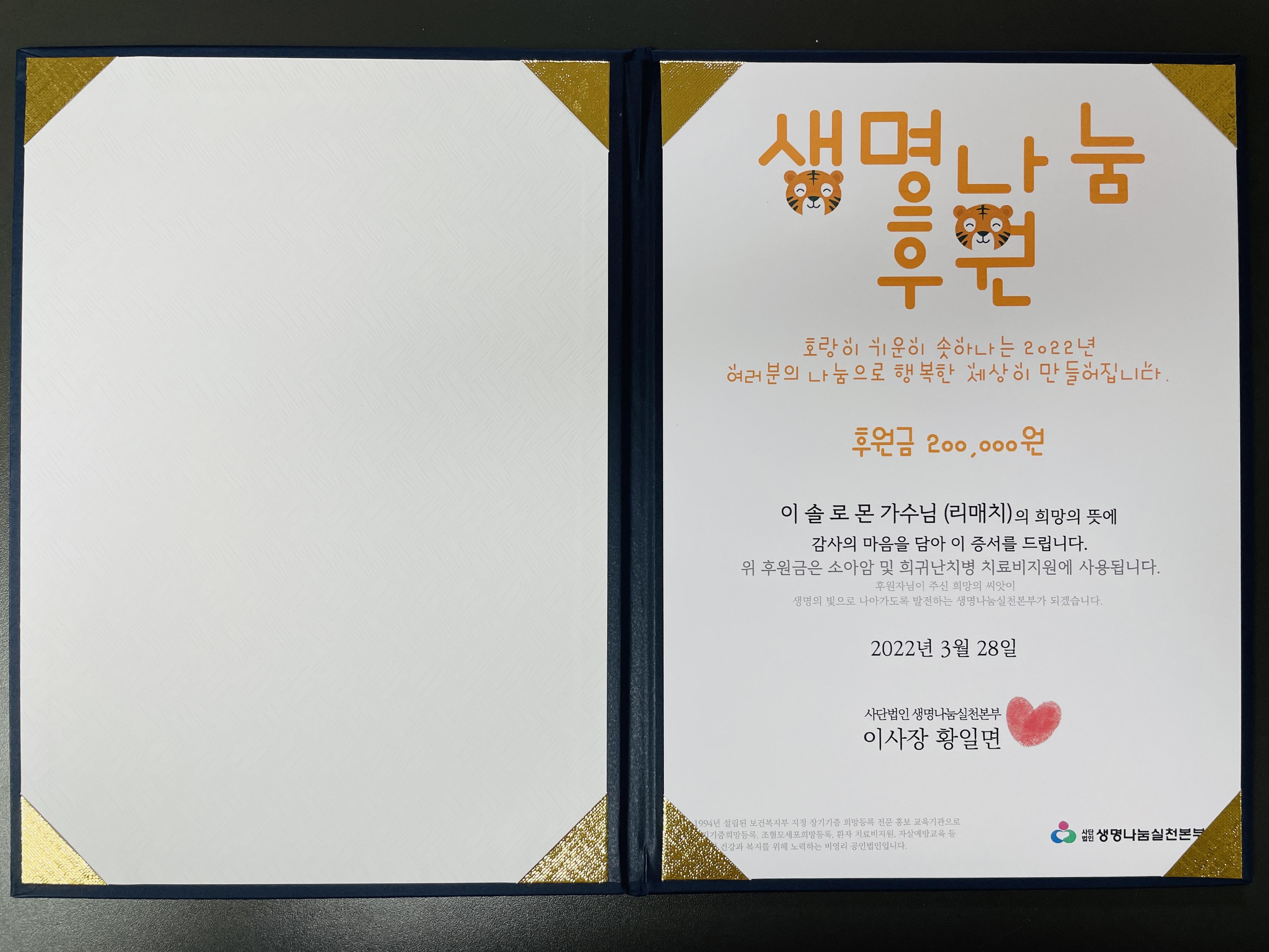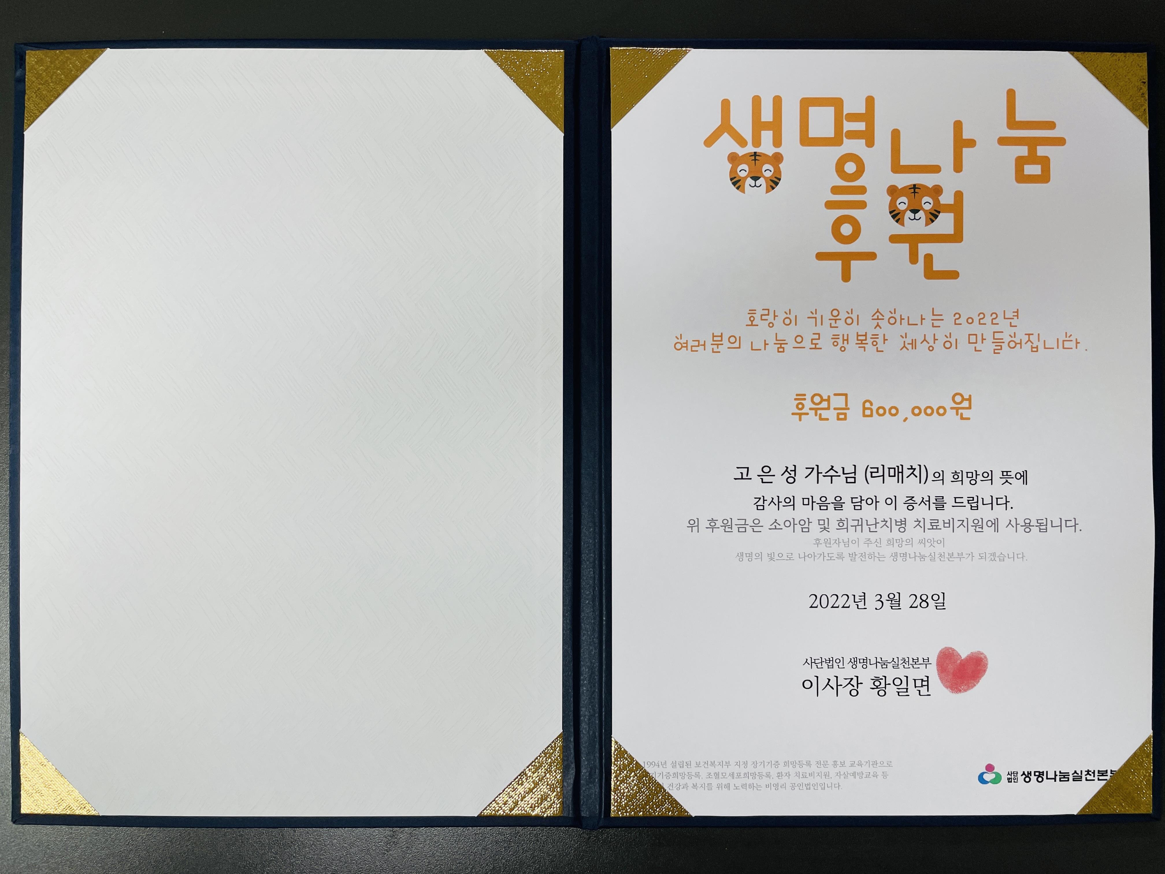국민 투표 - 리매치 🏅시즌1🏅 실물 후원증서