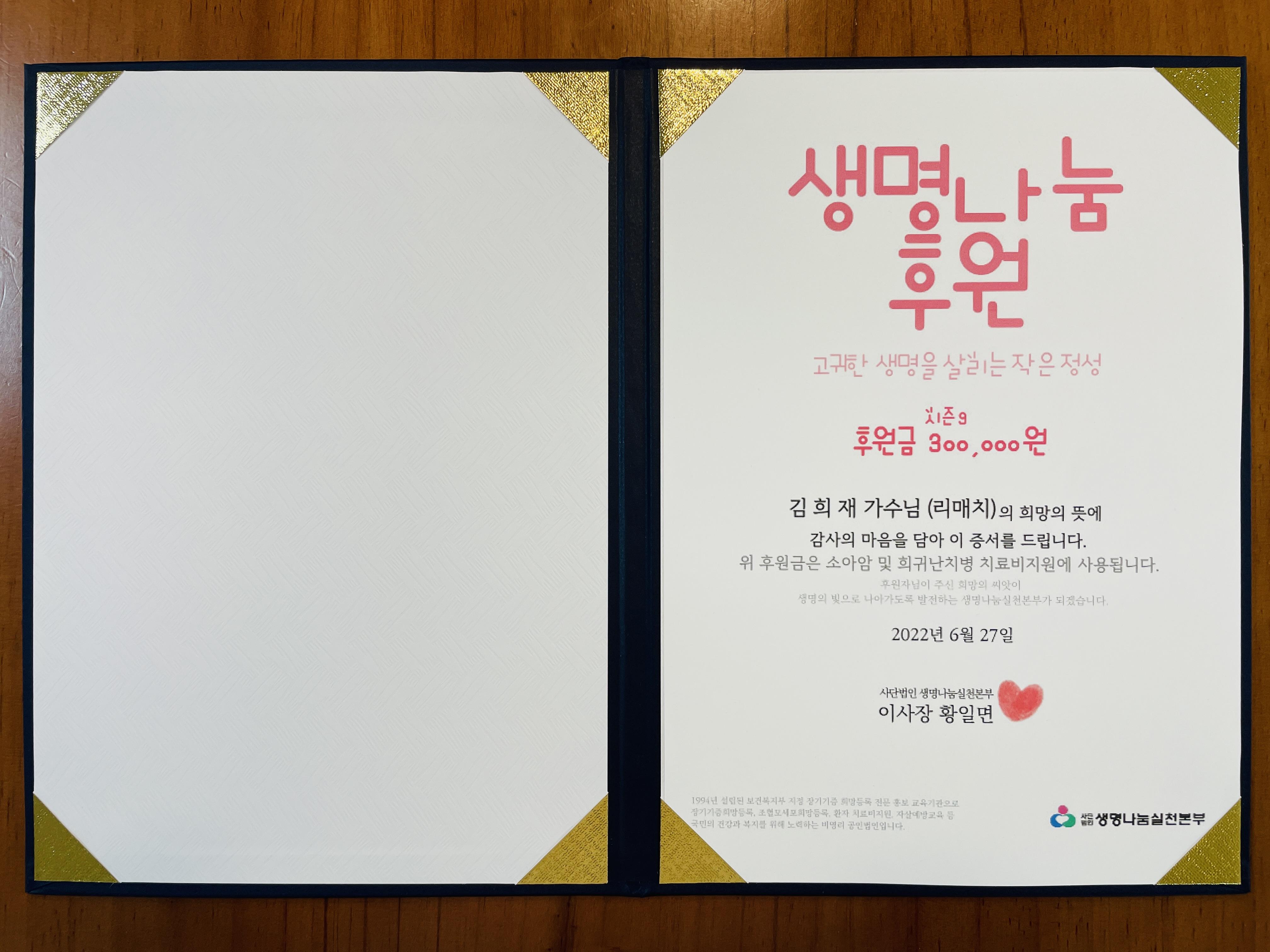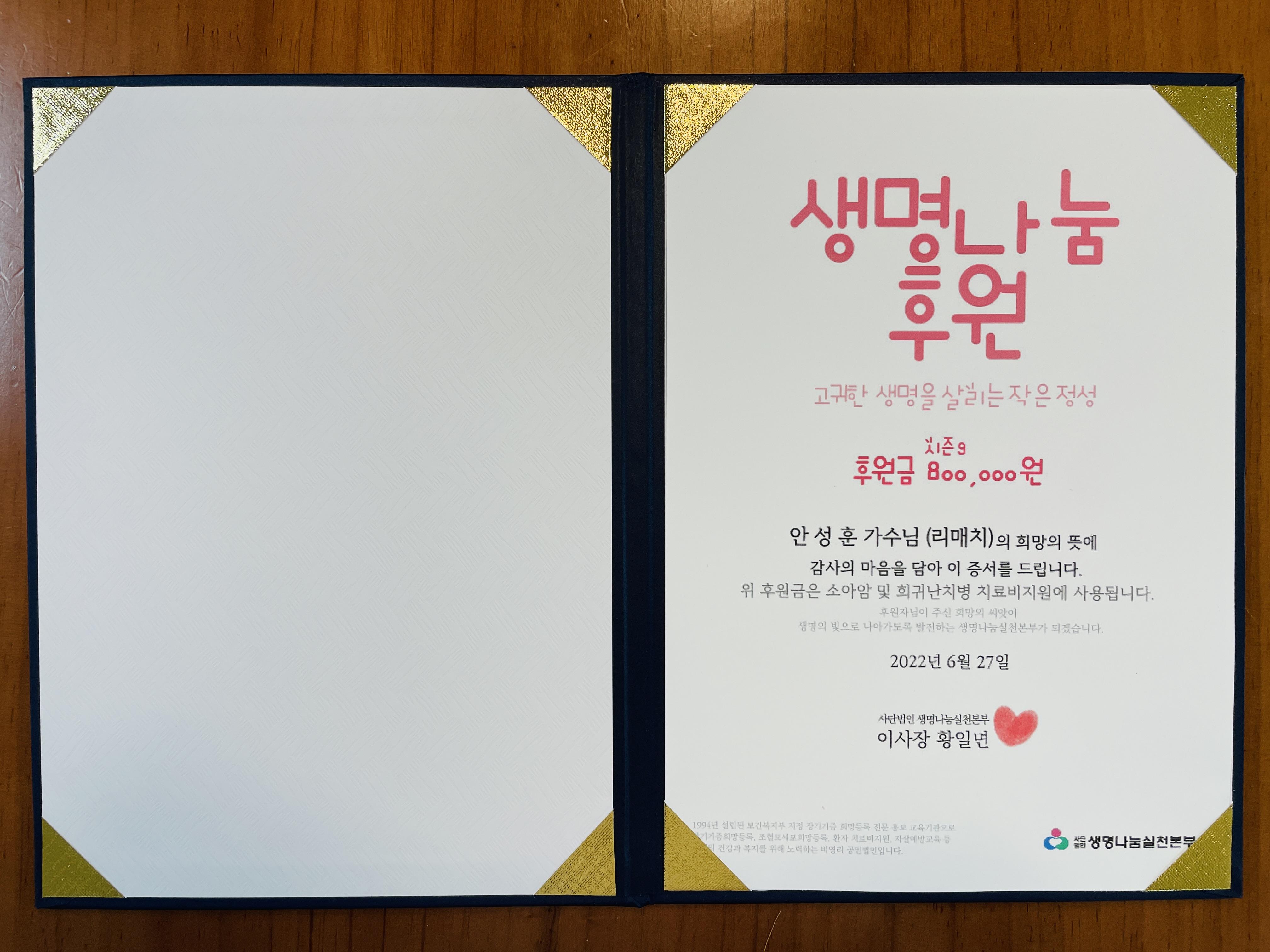 리매치 🏅시즌9🏅 실물 후원증서
