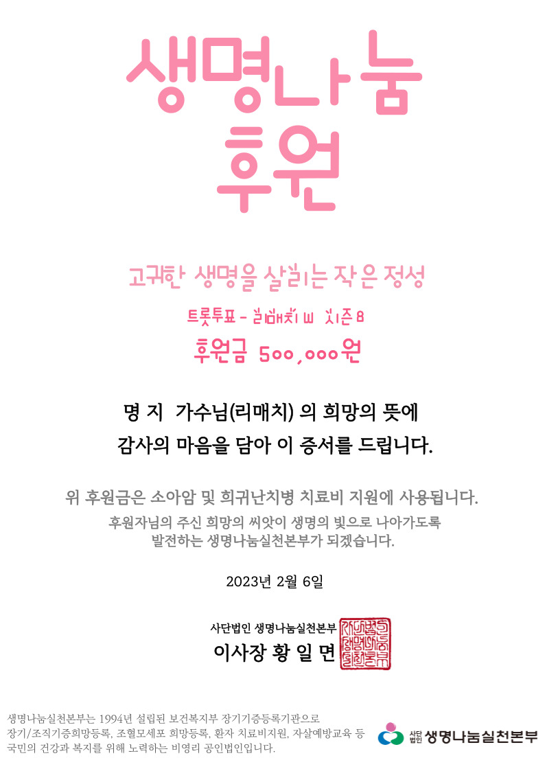 리매치W 🏅시즌8🏅 실물 후원증서 공개