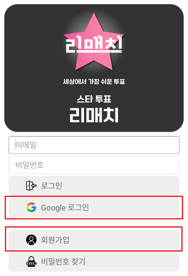 리매치는 '세상에서 가장 쉬운 투표' 라는 슬로건의 일환으로 회원가입 필요없이 쉽게 즐길 수 있었습니다.
