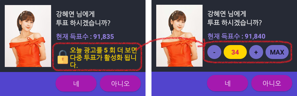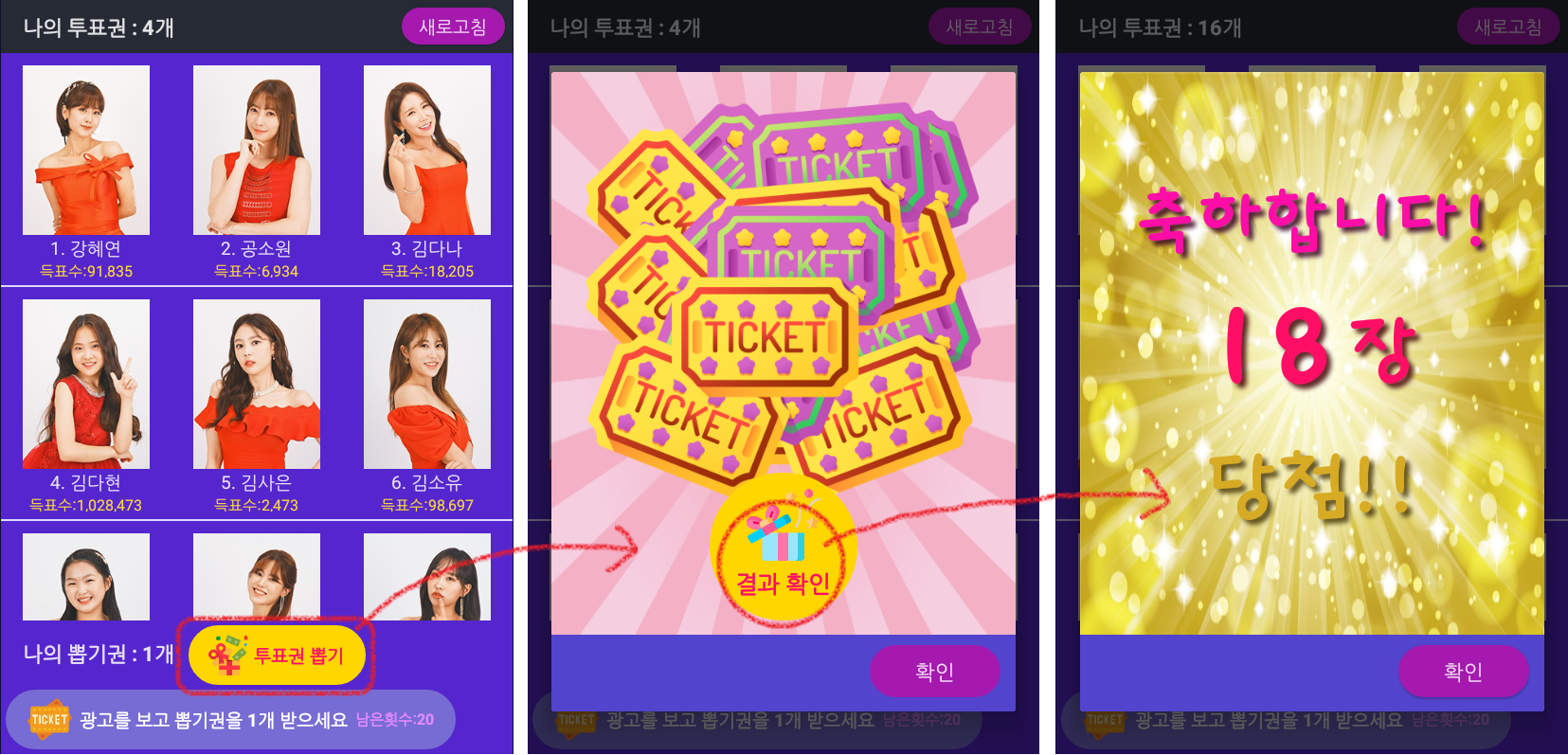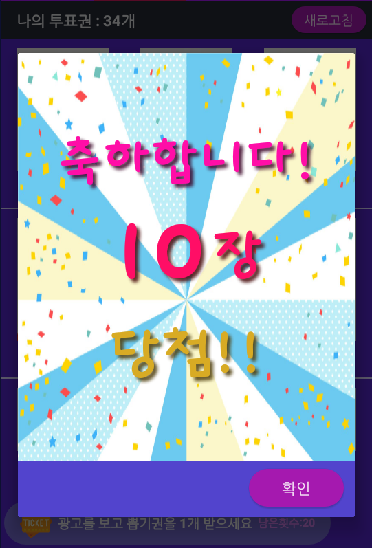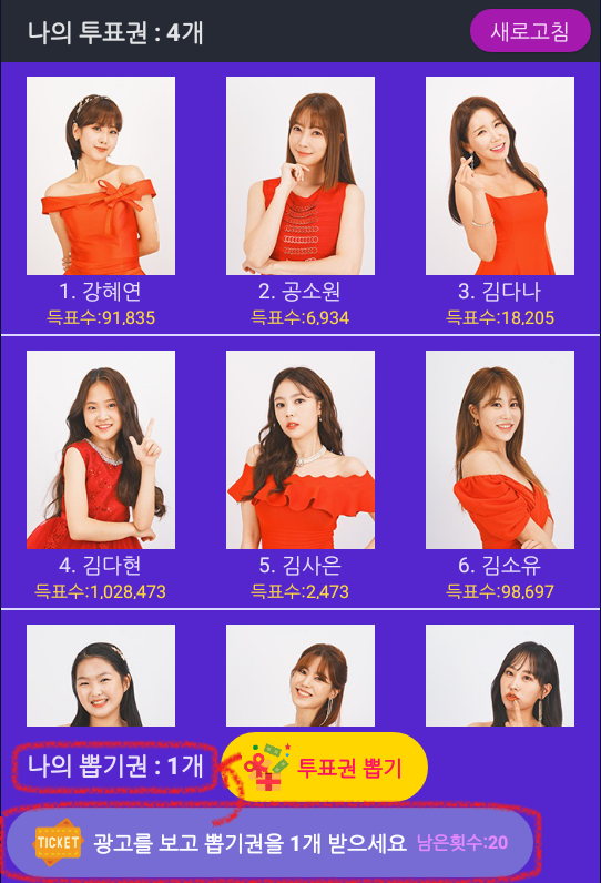 투표권을 왕창 얻을 수 있는 투표권 뽑기 기능이 추가 되었습니다!